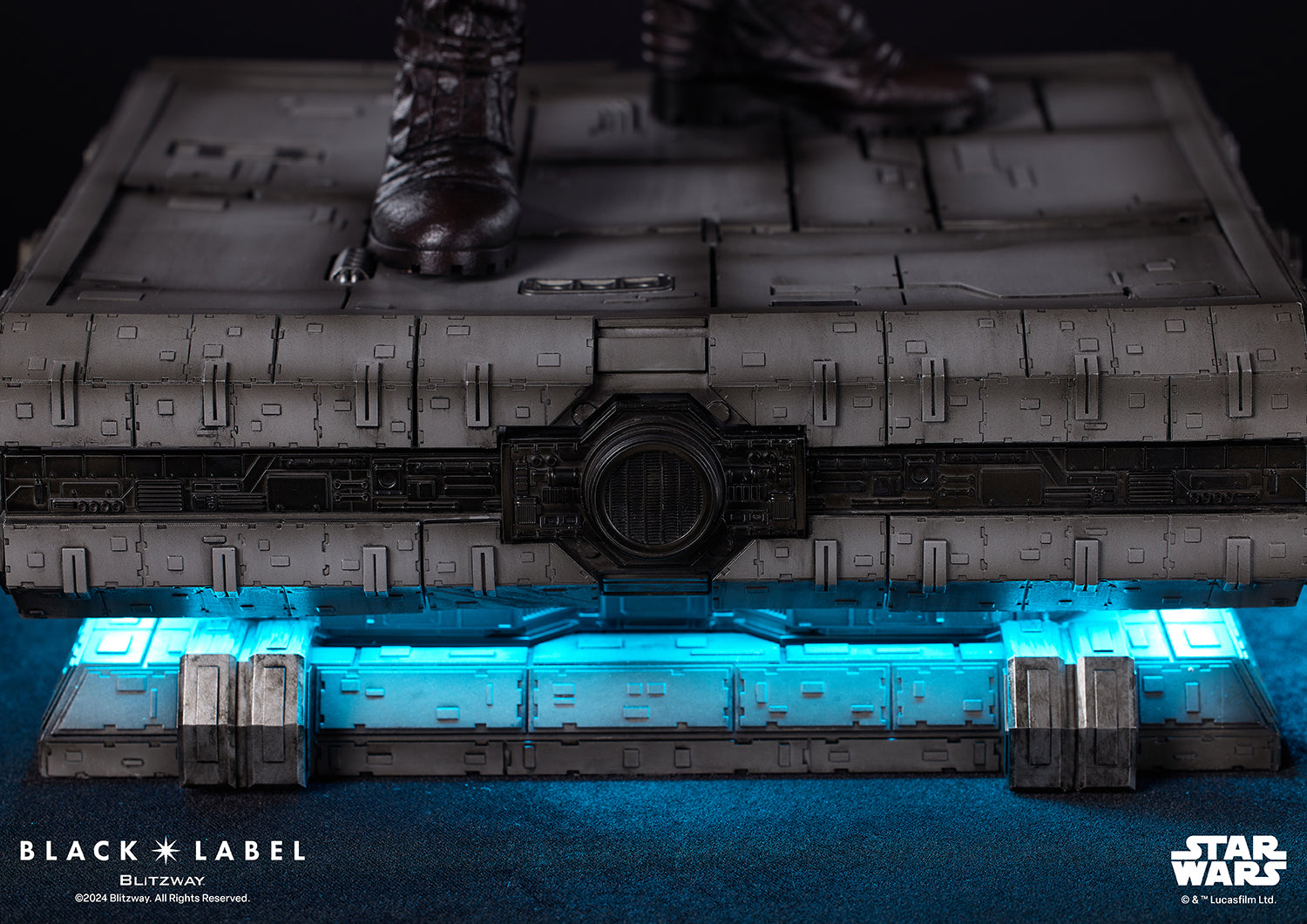 さらに、磁石で目線の微調整を可能にしたブリッツウェイの新技術「ムービング・アイ」や動的なポーズの再現ができるように関節を取り入れた「アクション・スタチュー」を採用しています。また、忠実に再現された衣装とライトセーバー、そしてスターウォーズの世界観をイメージして制作したオリジナル台座デザインまで。
